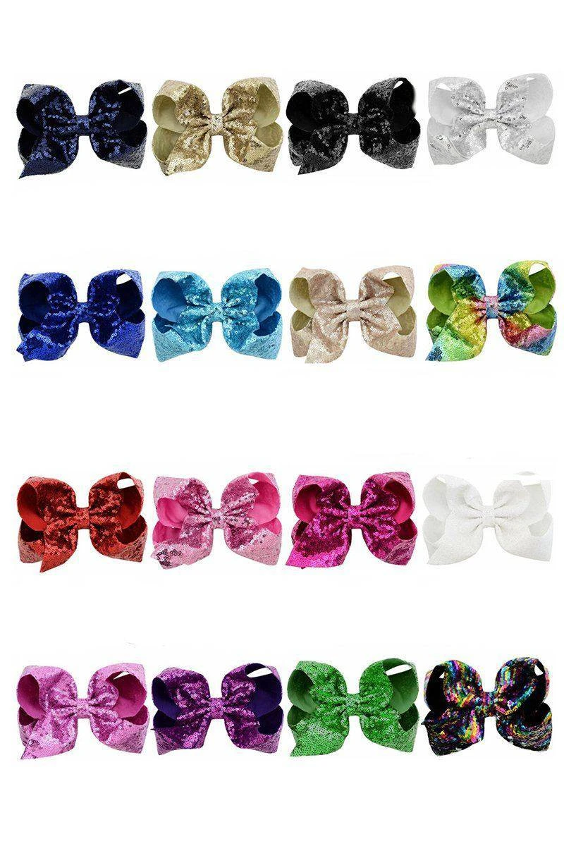 Our over sized hair bows are made with 2.75″ wide sequin fabric and measure approximately 7 inches in width.