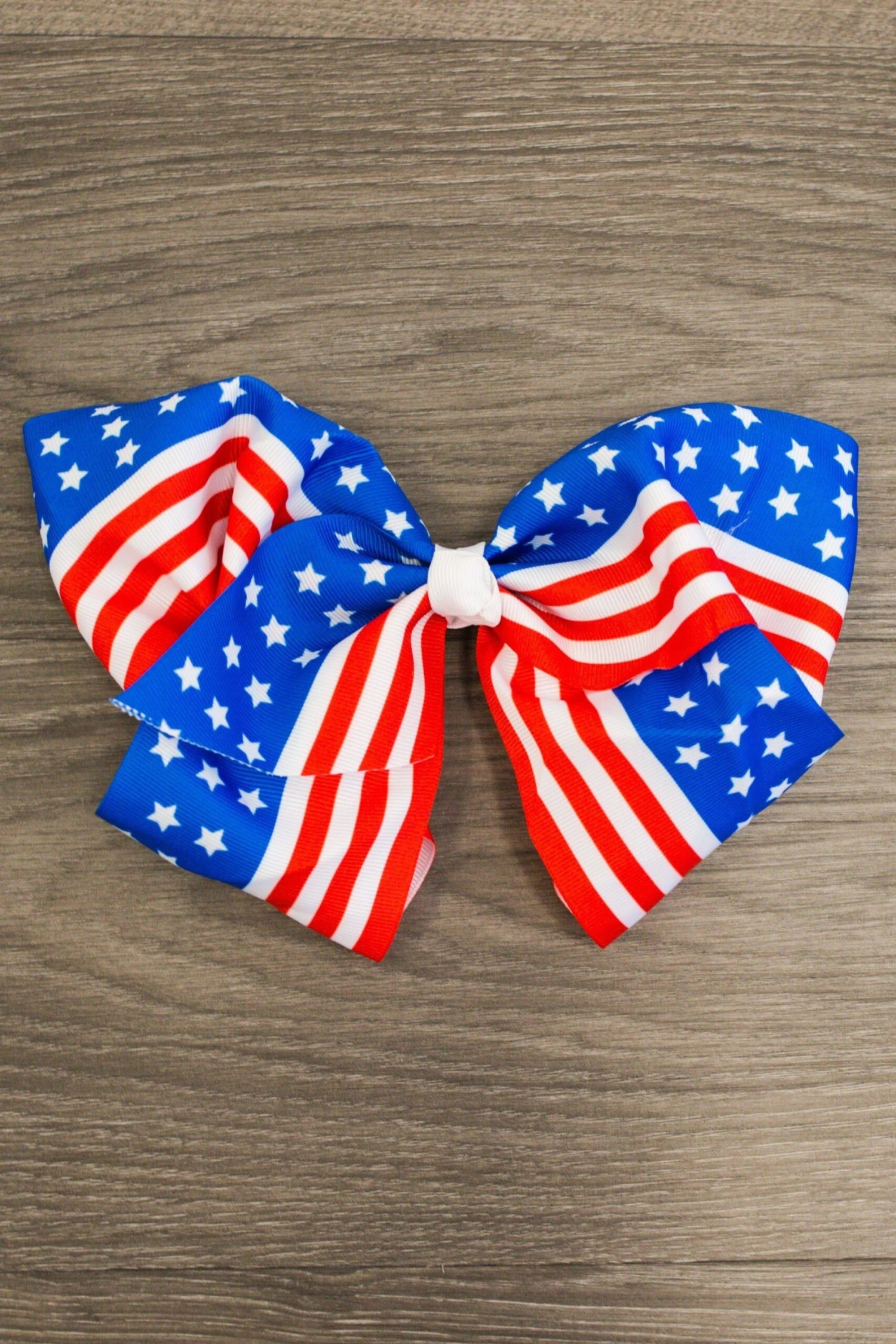 Add cute detail to her everyday hairstyles with this 8″ American Flag Bow. This stars and stripes bow features a cute print and makes a versatile piece in her hair accessories, and is easy to match with any outfit. The girly bow comes attached to an alligator clip that makes it easy to clip into any hairstyle for easy styling. She can wear it with a range of hairstyles, from pigtails to ponytails, for sweet and simple accessorizing.