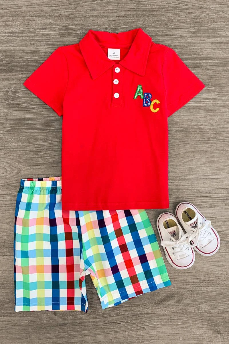 From days in the classroom to playing in the sand, your little guy will look cool and comfy in our ABC Gingham Short Set. Featuring an easy pull-on design, this two-piece set includes a red polo-style top and a pair of matching plaid shorts. The pieces can be worn together as a set or they can be mixed and matched with other pieces for versatile and comfy ensembles. Check out our boys collection for more sets like this one!