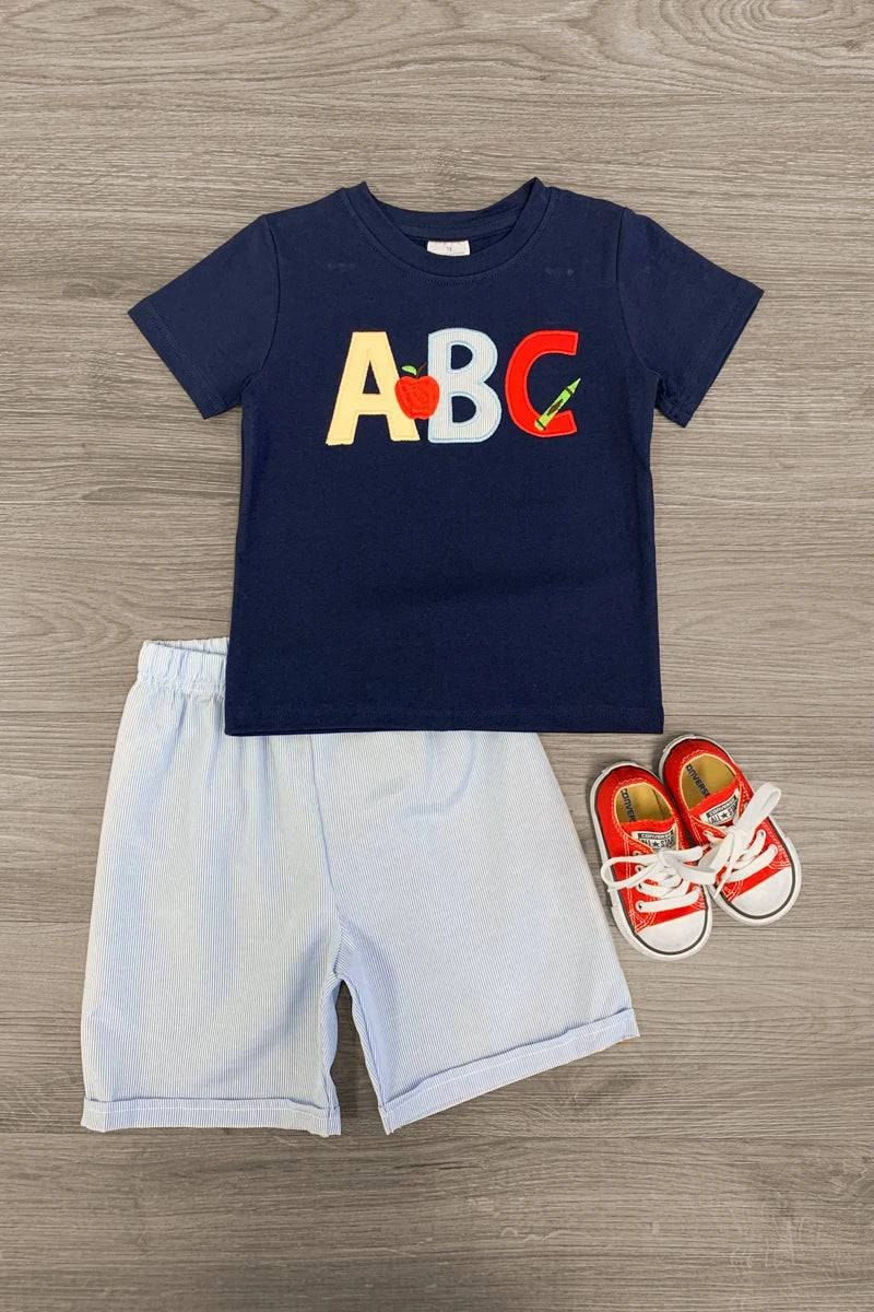 From days in the classroom to playdates in the park, your little guy will look cool and comfy in our ABC’S Blue Striped Short Set. Featuring an easy pull-on design, this two-piece set includes a navy top with an ABC design on the front and a pair of matching striped shorts. The pieces can be worn together as a set or they can be mixed and matched with other pieces for versatile and comfy ensembles. Check out our boys collection for more sets like this one!