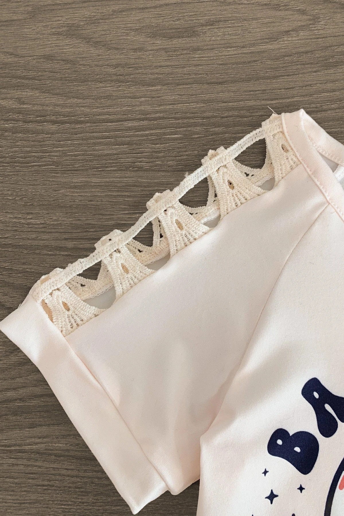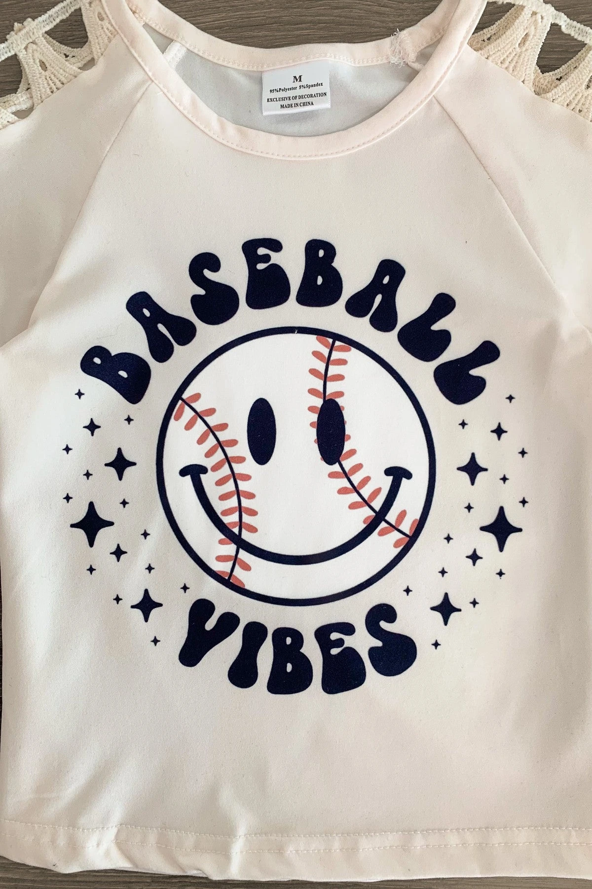 Bring on the warmer weather with our “Baseball Vibes” Smiley Sequin Short Set for girls. The cream crochet sleeve top features a fun design on the front and looks adorable paired with the matching shorts. The stretchy waist helps comfort and fit and can be great for on the go, while the black sequins add a fun touch. She can pair this set with sandals or a matching necklace for the perfect look!