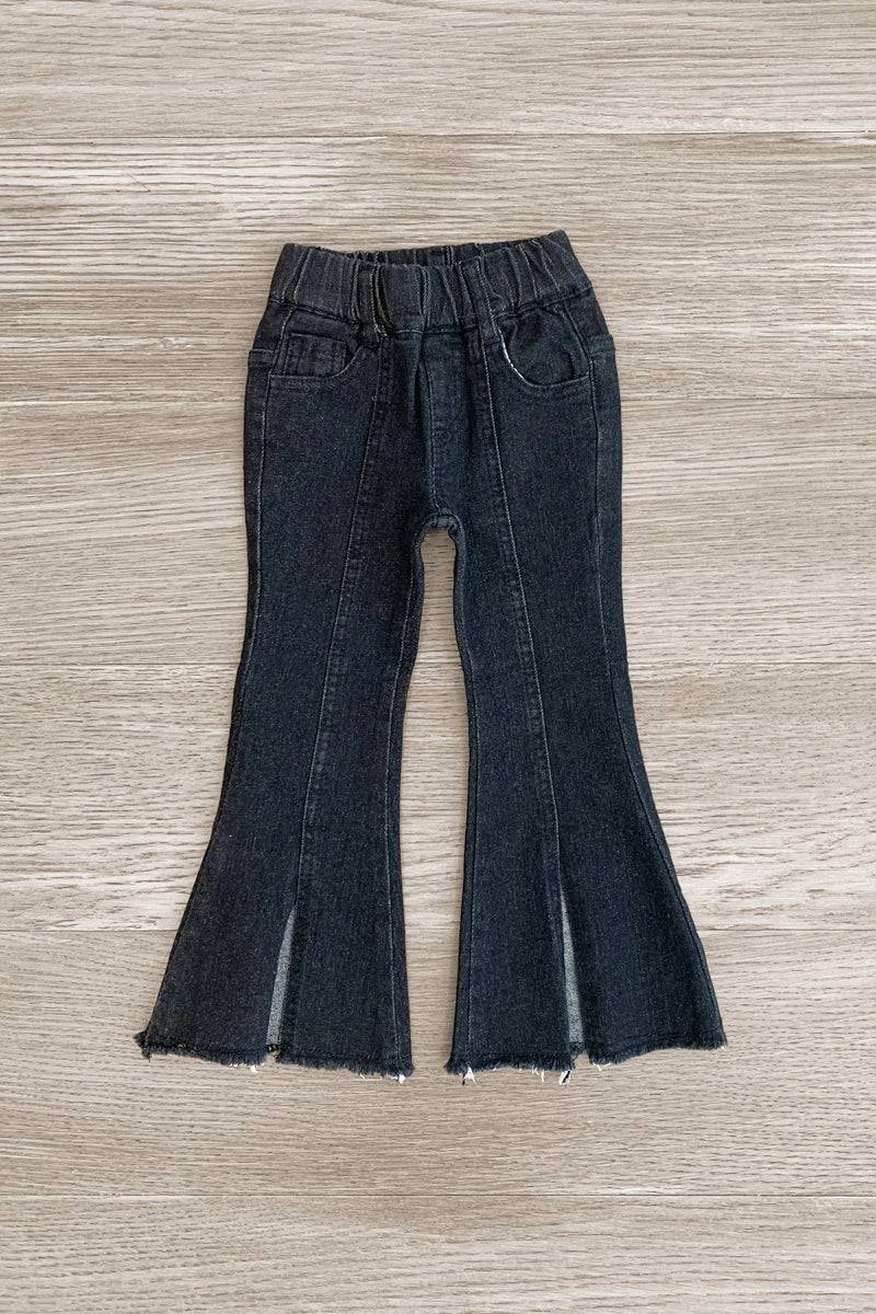 Your little girl will skip into sweet style with these Black Stretch Flare Jeans. These split-hem pants feature a soft and breathable construction with a hint of spandex, providing a perfect fit during any activity. Pair these fun pants with a variety of SIP tops or our booties for the perfect look!