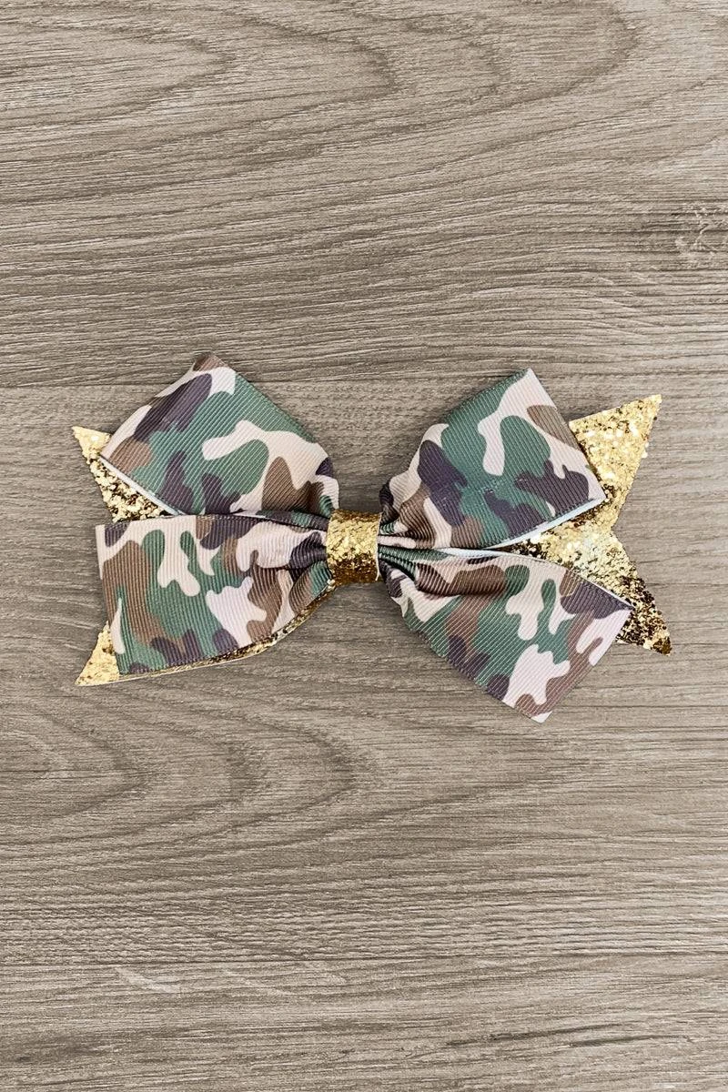 Add cute detail to her everyday hairstyles with this Camo Glitter Bow. This camouflage bow features a cute print and makes a versatile piece in her hair accessories, and is easy to match with any outfit. The girly bow comes attached to an alligator clip that makes it easy to clip into any hairstyle for easy styling. She can wear it with a range of hairstyles, from pigtails to ponytails, for sweet and simple accessorizing.