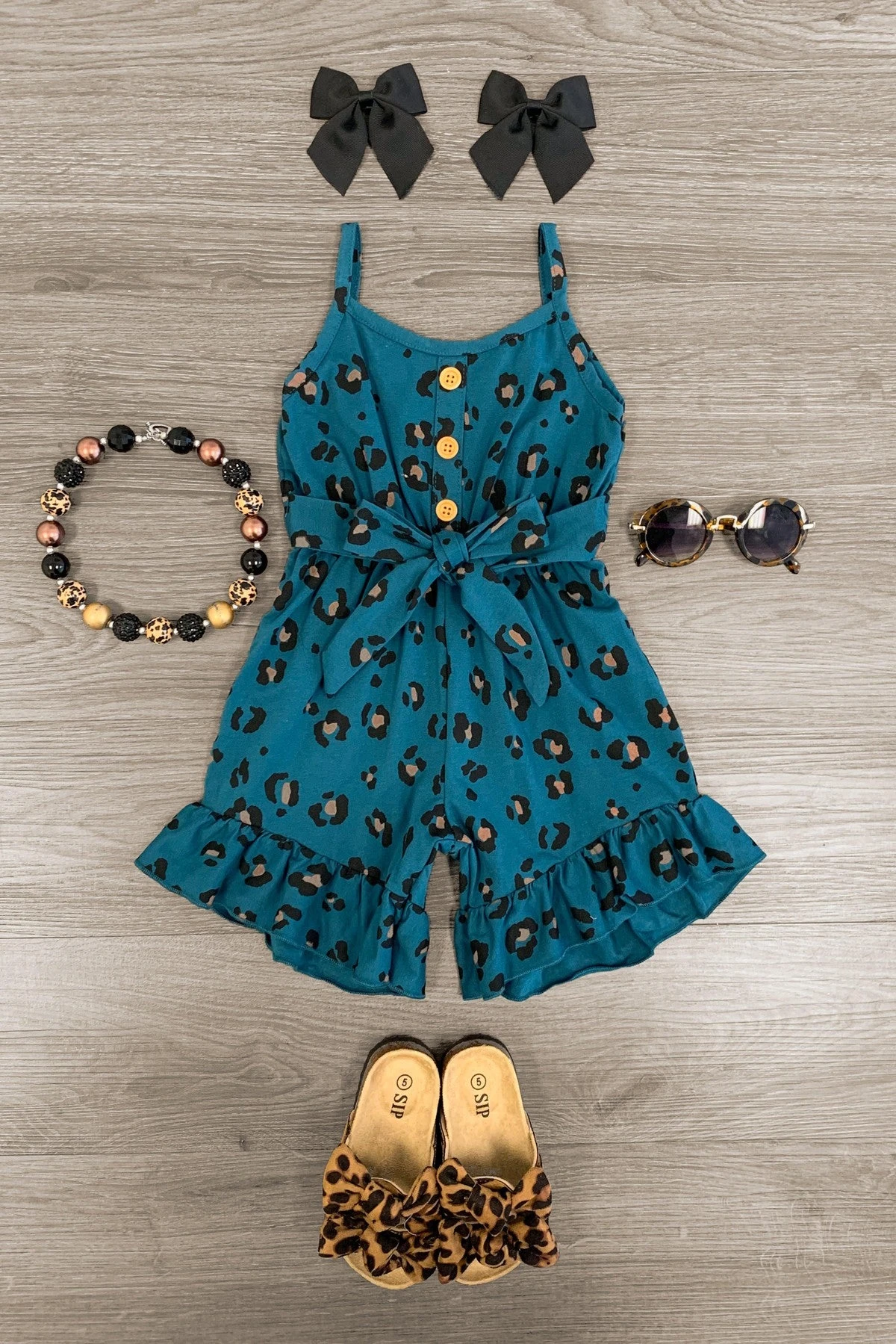 It’s a one piece complete outfit! She’s going to love this girls’ Dark Teal Leopard Tank Romper for every occasion. The dark teal leopard print brightens up every room and is perfect for warm weather activities. Run, jump, skip, slide, and climb in this versatile romper – pair with a couple trendy bows for the ultimate activity ensemble, or match with a cute pair of sandals for something a little more glam. Made with ultra-soft fabric & easy on and off design, this cute girls romper is perfect for every occasion.