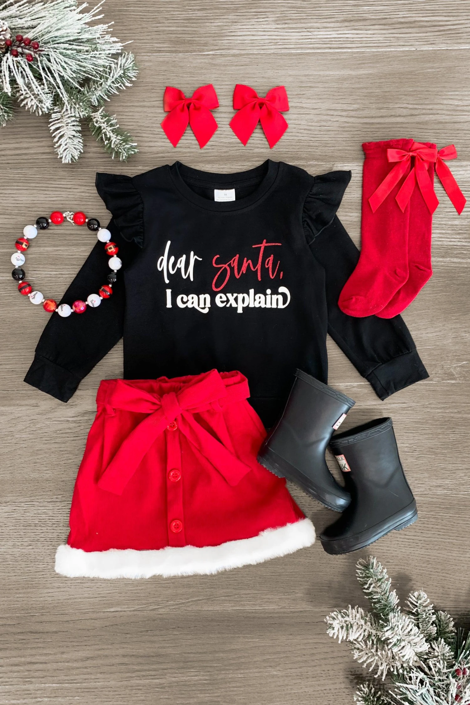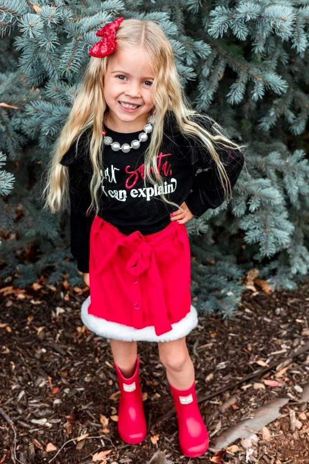 Christmastime just got a fun touch with our matching “Dear Santa, I Can Explain” Sets for boys & girls. The boys top features a cute saying that pairs perfectly with the girls’ skirt set. The ultra-soft material & pull-on designs make these sets perfect for Christmas Eve or for school. Check out our Christmas collection for more sets like these!
