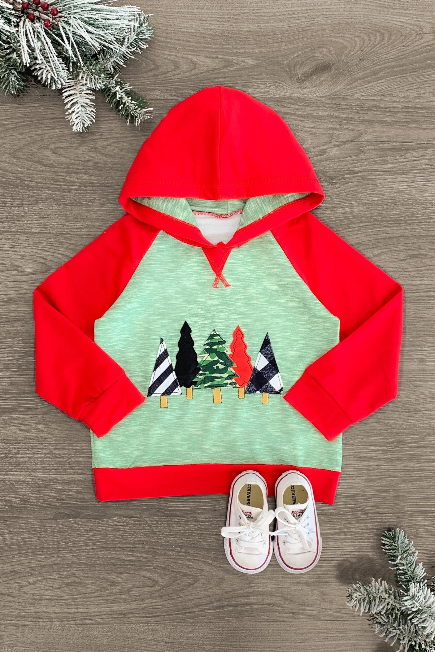 This Green & Red Patterned Tree Hooded Long Sleeve Top features long sleeves and a cute tree design embroidered on the front. In a fun design, this hooded top is made from soft and cozy fabric that will keep your little one comfy during all adventures. They can pair it with a variety of SIP bottoms or check out our boys’ collection for more hoodies like this one!