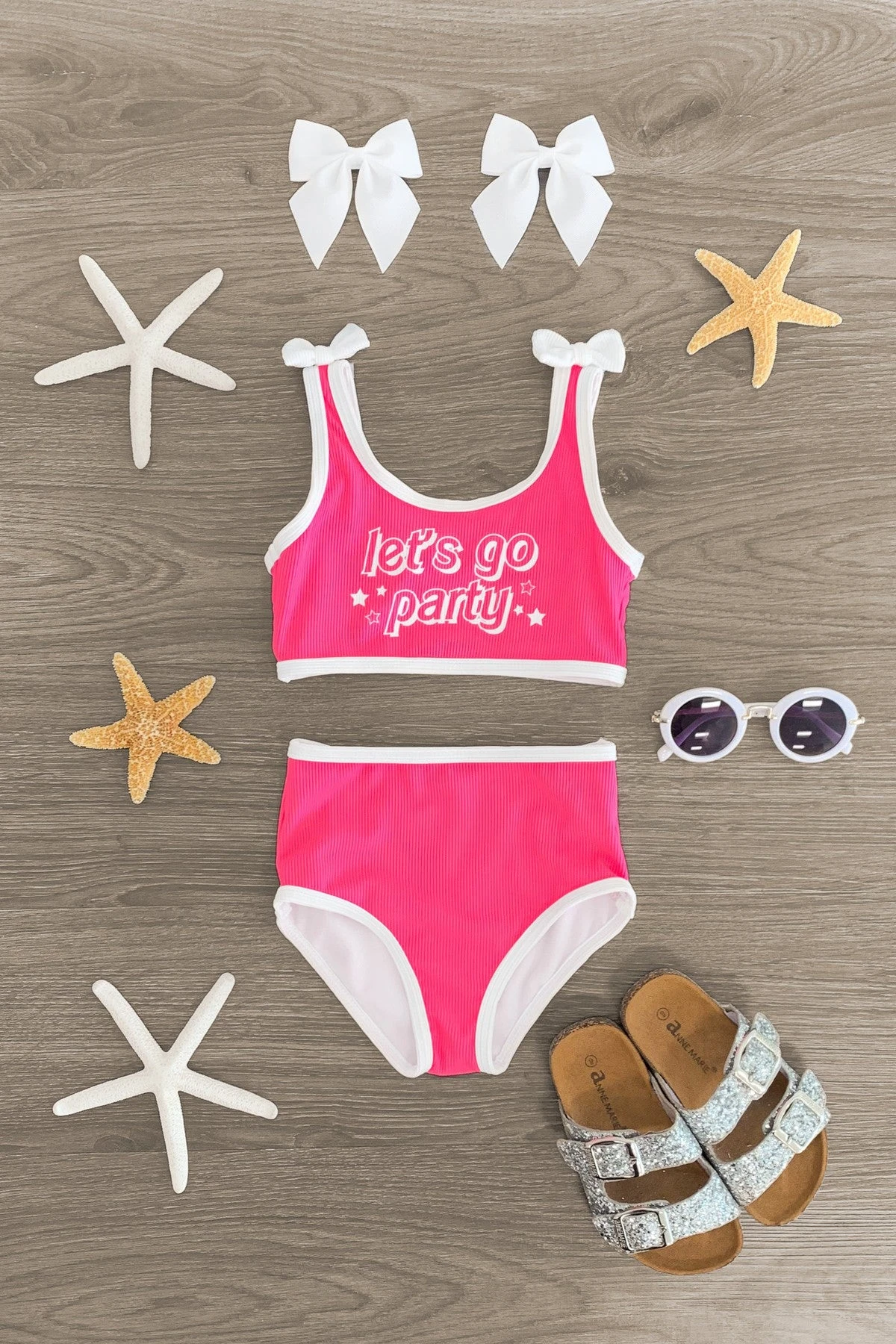 She’ll love to flaunt her bright & sunny side on the beach or poolside with friends in this “Let’s Go Party” Neon Pink Bikini. Made from soft & lightweight fabric with a high waisted design, this bikini set is designed to keep her comfortable both in and out of water. Featuring a neon pink top paired with matching bottoms, she can pair this cute swimsuit with sandals and a pair of sunnies for the perfect beachy look.
