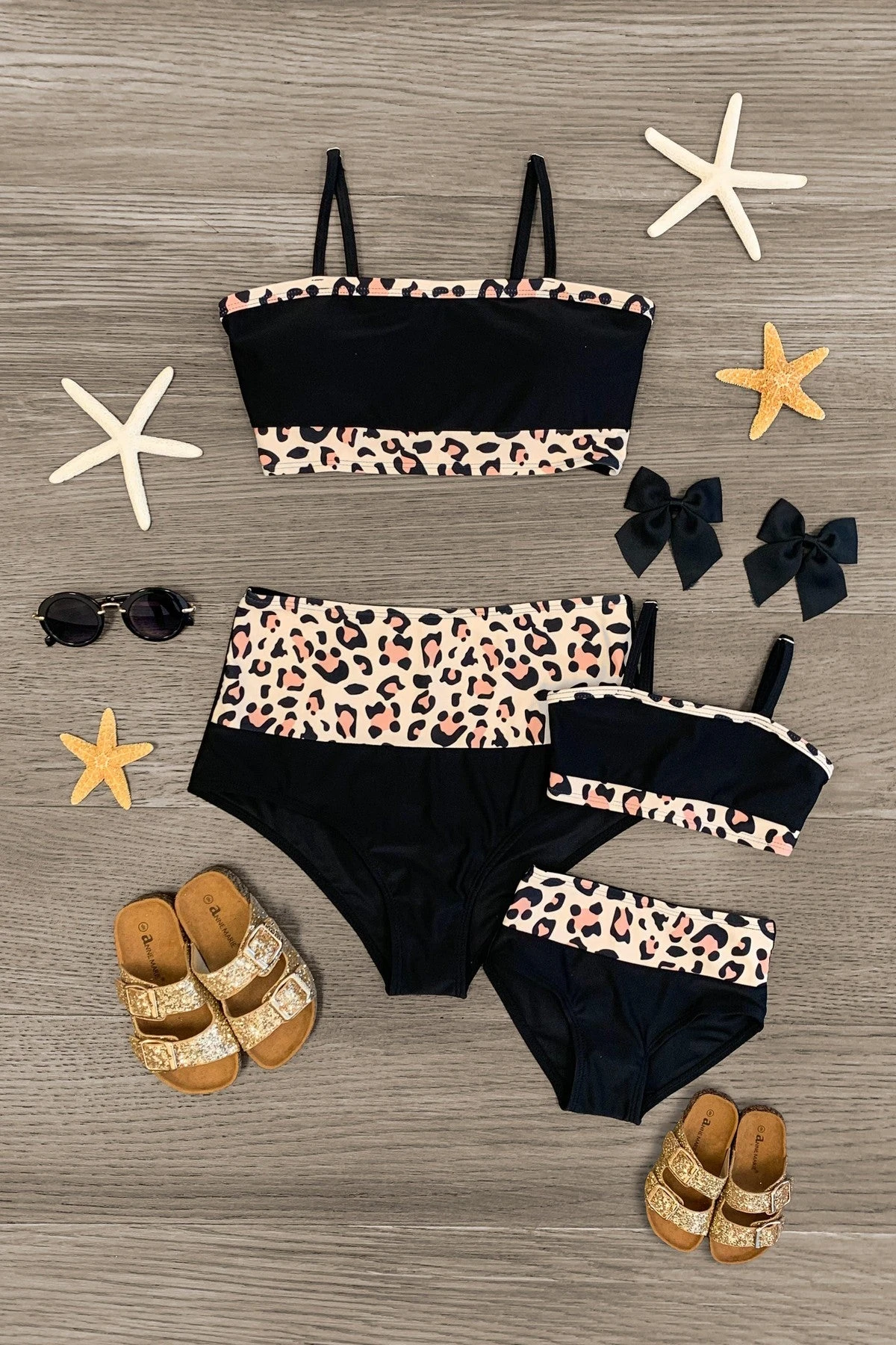 Twinning is winning! You and your little will look adorable on the beach or poolside with friends in our Black & Tan Leopard Bikini. Made from a soft & lightweight fabric with flattering design, this two-piece bikini is designed to keep her comfortable both in and out of water. Featuring a black & leopard design, she can pair this fun swimsuit with sandals and a pair of cute sunnies for the perfect beachy look.