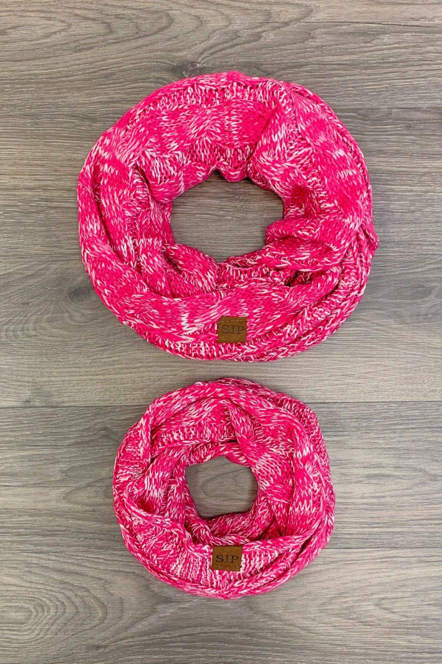 For the finishing touch to any outfit, pick up our Sparkle in Pink Scarf. In pink and white knit this scarf is easily incorporated into your wardrobe and can be worn with anything from a T-shirt and denim jacket to a button-down shirt and blazer. Loop just once or several times to create the style that’s right for you.