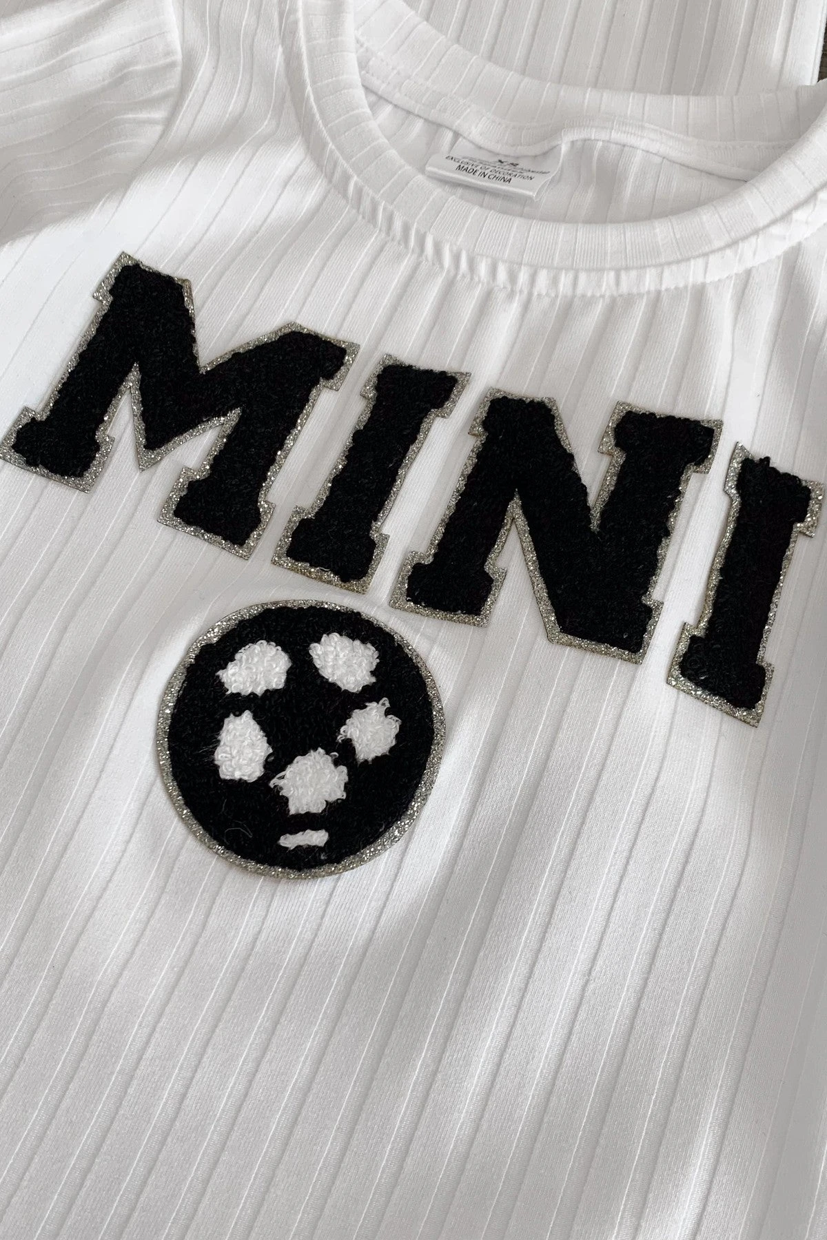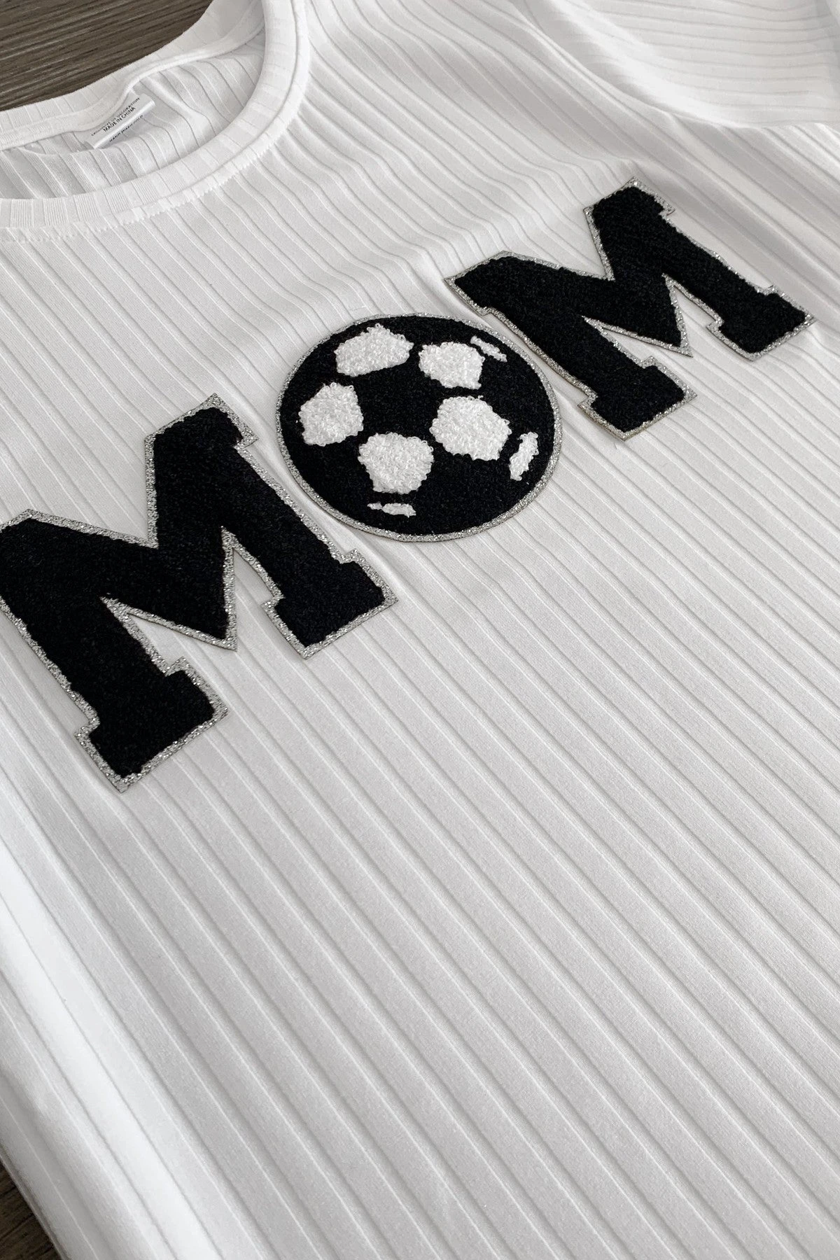 - Mom & child tops feature a “Mom & Mini” soccer ball chenille patch on the front