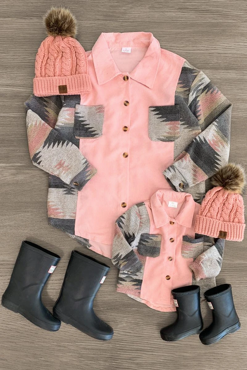 Twinning is winning, especially with your little mini me! You and your little gal will love the comfort and cool style this Pink Southwestern Jacket brings to her Fall wardrobe. Made from soft breathable fabric, this jacket feels soft against her skin, while the long sleeves & hood offer her a cozy fit. Pair this jacket with our matching bows or booties for the perfect look!