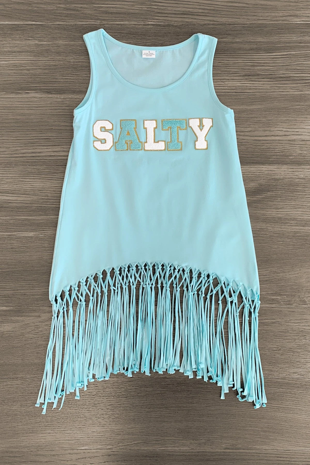 Twinning is winning, especially with your mini me! These “Salty” Chenille Patch Tank Tops feature fringe trim with a fun saying on the front. In a versatile light blue design, the top is made from soft & breathable fabric that will keep her comfy during all adventures. She can pair it with a variety of SIP bottoms & our sandals for the perfect look! Little ones love to match their mommy!