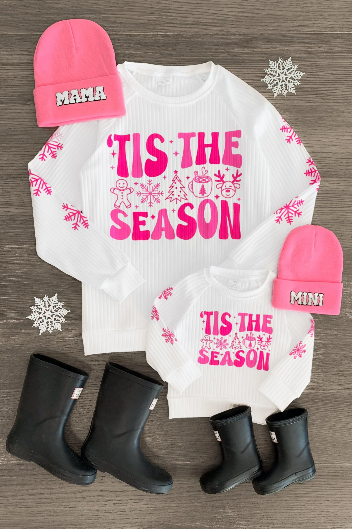 - Mom & child tops both feature a “‘Tis The Season” design on the front