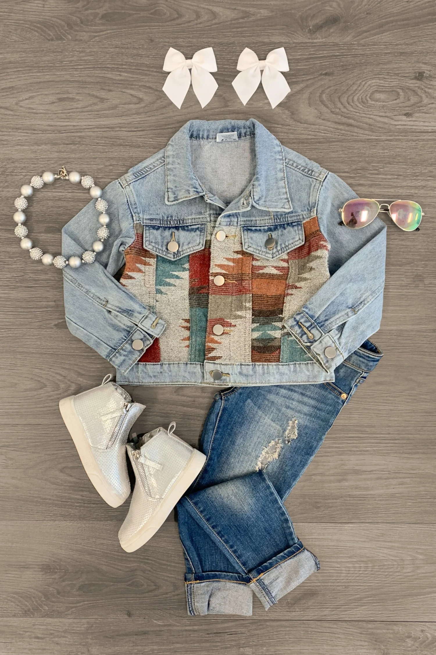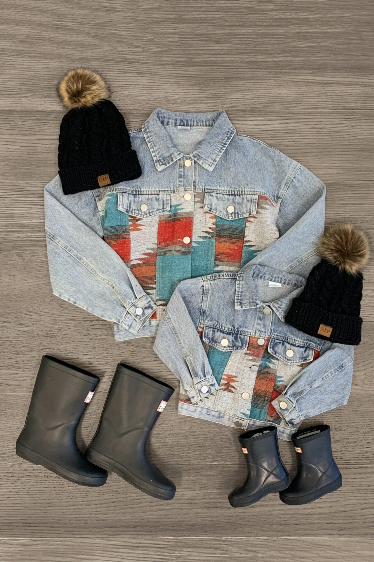 Twinning is winning, especially with your little mini me! You and your little gal will love the comfort and cool style this Western Print Denim Jacket brings to your wardrobes. Made from soft breathable fabric, this jacket feels soft against the skin, while the long sleeves offer her a cozy fit. Pair this jacket with our matching bows or booties for the perfect look!