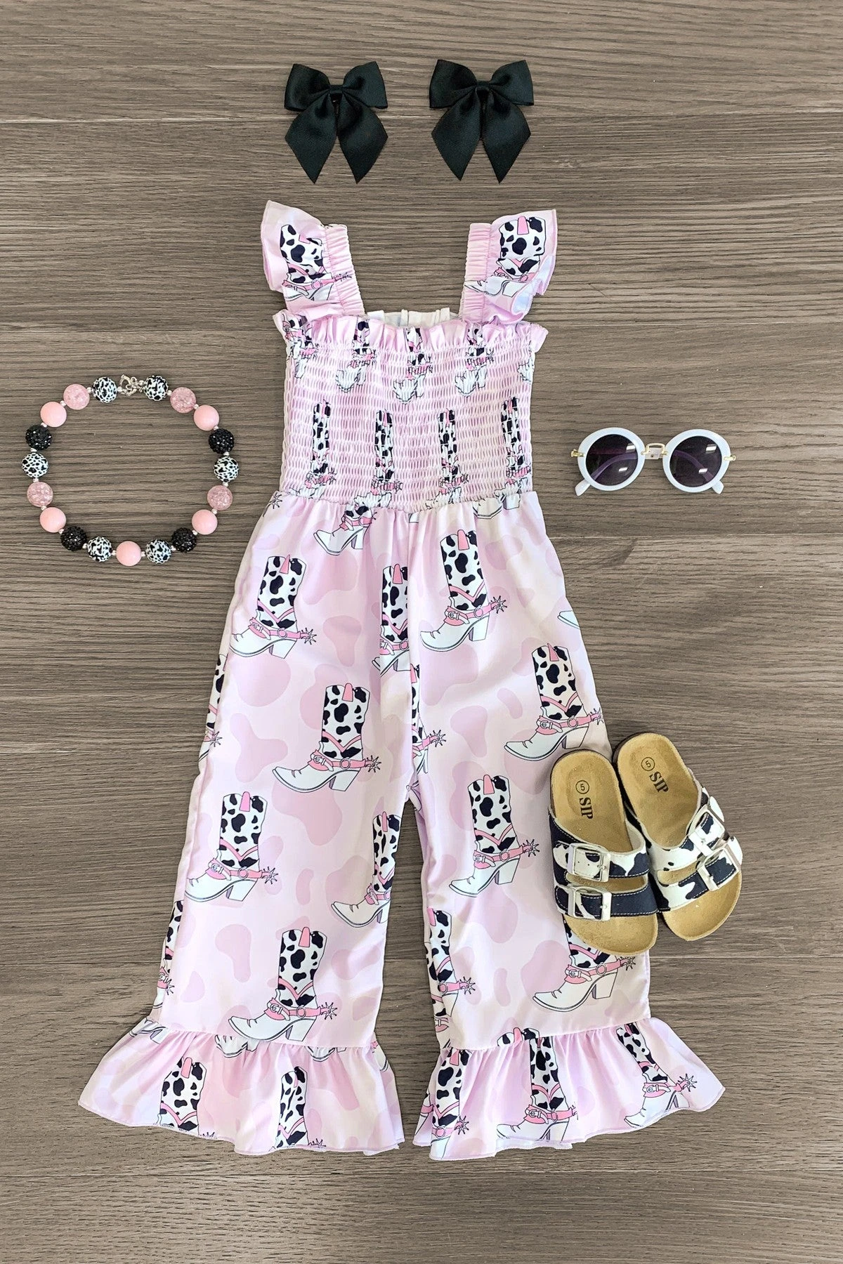 It’s a one piece complete outfit! She’s going to love this girls’ jumpsuit for every occasion. The pastel pink cow print brighten up every room and is perfect for warm weather activities. Run, jump, skip, slide, and climb in this versatile jumpsuit – pair with a couple trendy bows for the ultimate activity ensemble, or match with a cute pair of sandals for something a little more glam.