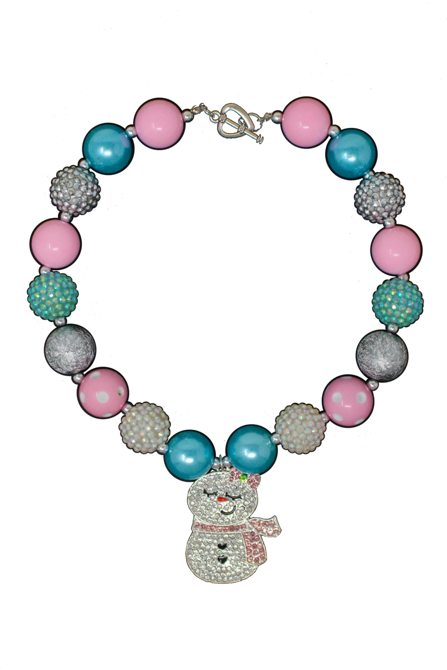 - Pink, blue & silver beads with a rhinestone snowgirl pendant