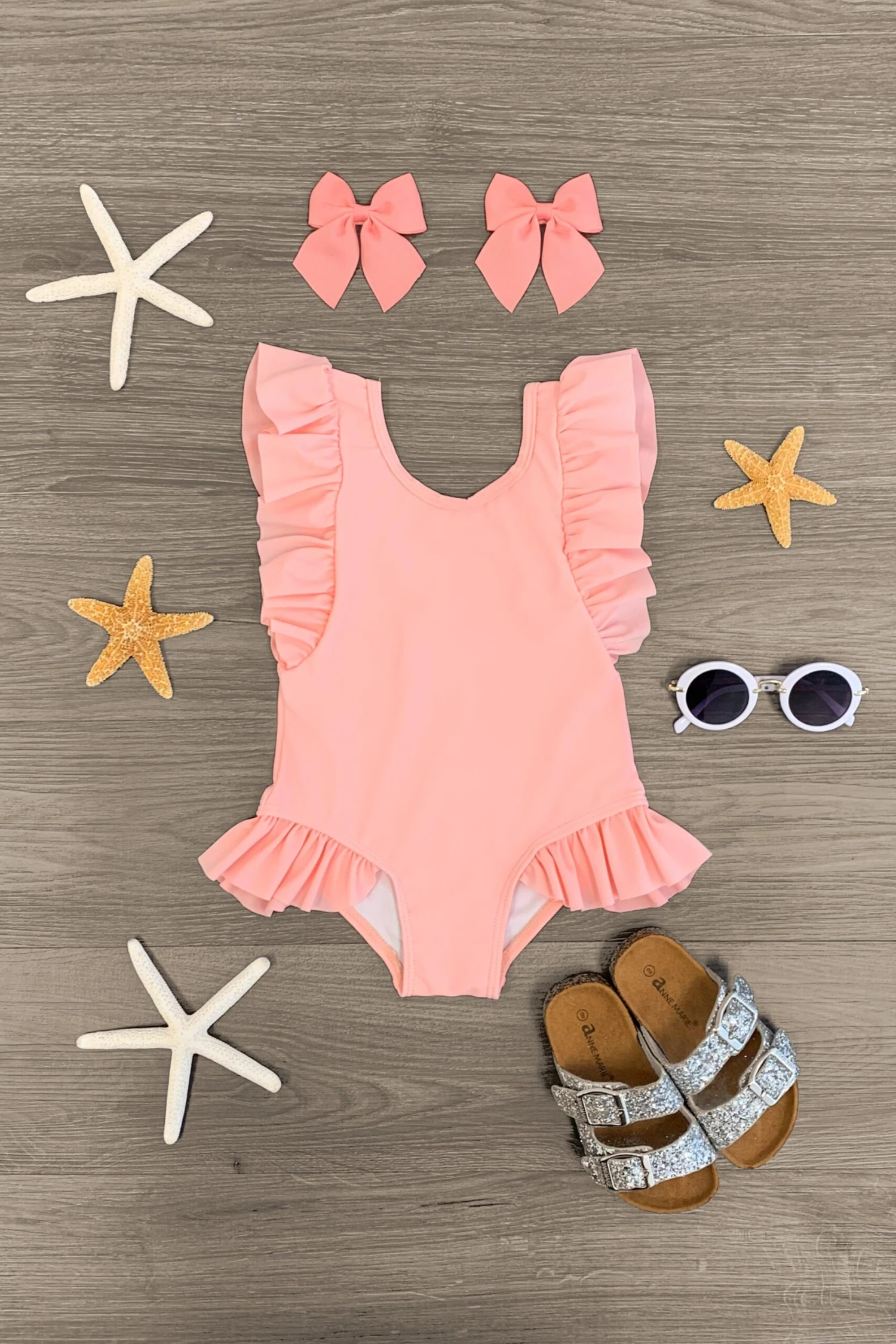 She’ll love to flaunt her bright, sunny side on the beach or poolside with friends in our Pink Ruffle One Piece Swimsuit. Made from a soft & lightweight fabric with sweet ruffle details, this one-piece swimsuit is designed to keep her comfortable both in and out of water. Adorned with an allover pink design and a scoop-back style for an airy look. She can pair this swimsuit with sandals and a sunnies for a fun beachy look.