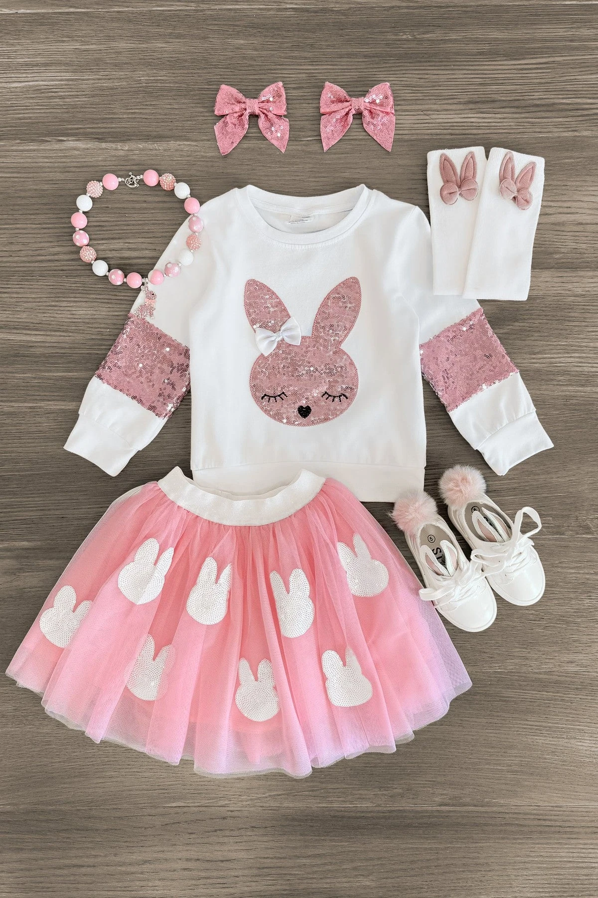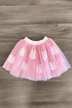 Your sweet little bunny will look so adorable in our Pink Sequin Bunny Tutu Skirt. This skirt features a pink tutu design with white sequin bunnies allover. Sporting a comfortable waistband for a secure fit, as well as the pink tulle overlay, this skirt is the perfect addition to your little one’s closet. Pair this fun skirt with a variety of SIP tops or our booties for the perfect Easter look!