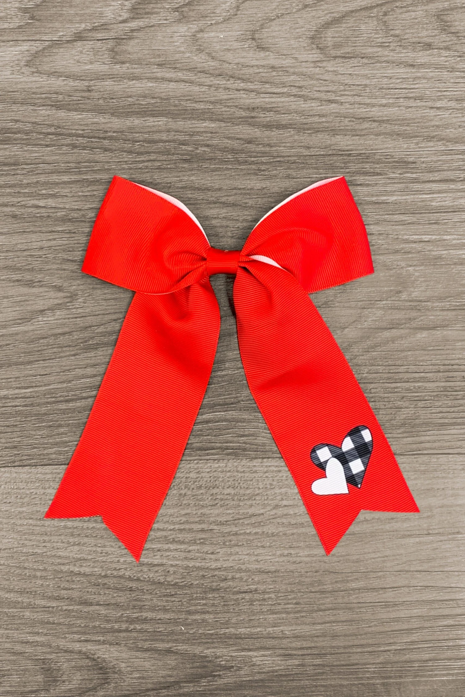 Get your locks ready for the season of love with this Red Heart Bow. The clip is easy to add to your hair, whether you’re holding a few strands back from your face or decorating a ponytail. This hair accessory features a solid red design with cute hearts on the end! This bow is the perfect finishing touch to any SIP Valentine’s Day outfit.