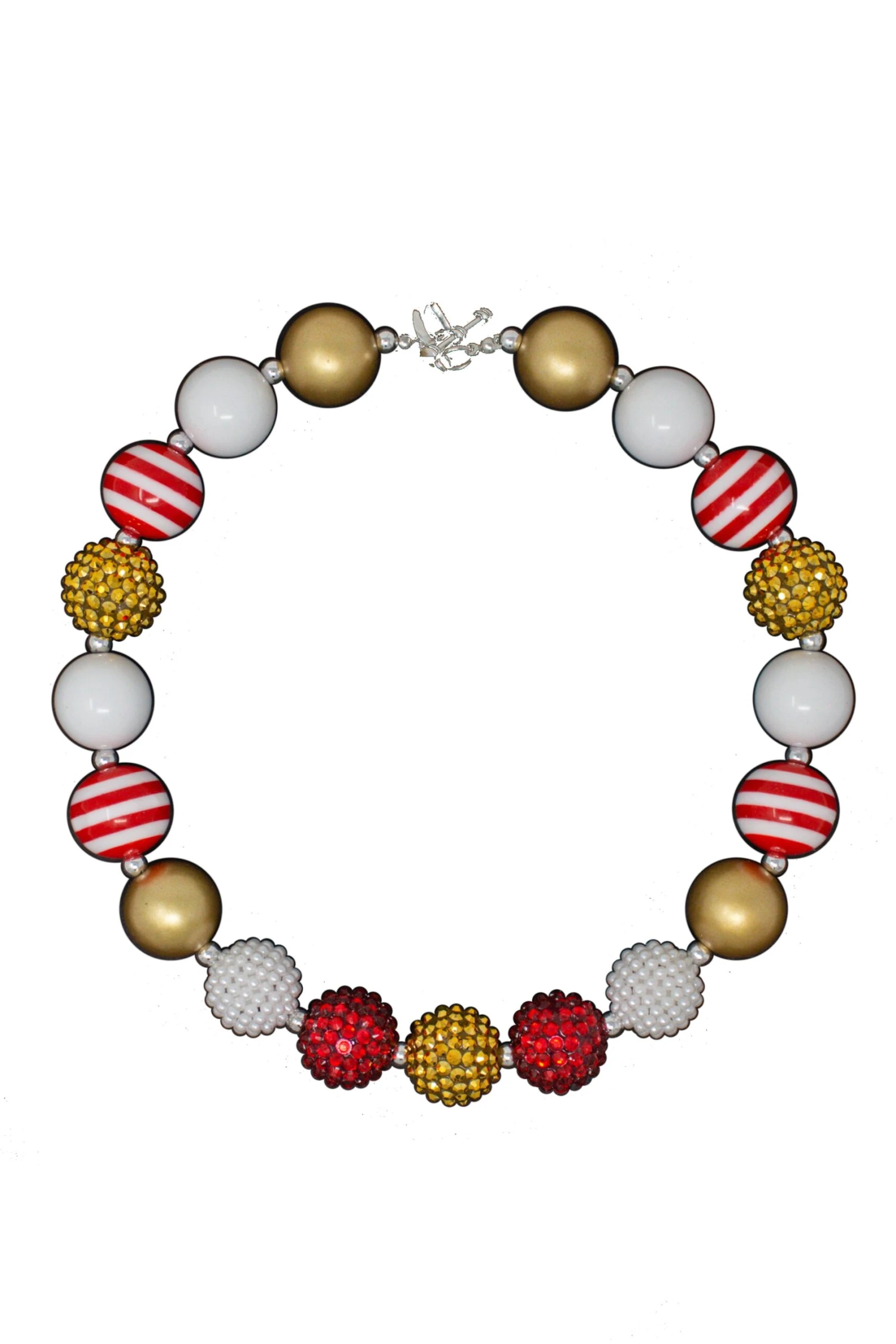 This girls’ bubblegum necklace is sure to be your little girls’ favorite! Bring those patriotic outfits to life with accessories that radiate her unique personality. The red, white and gold beads, along with the simple design make it a breeze to match with most outfits.