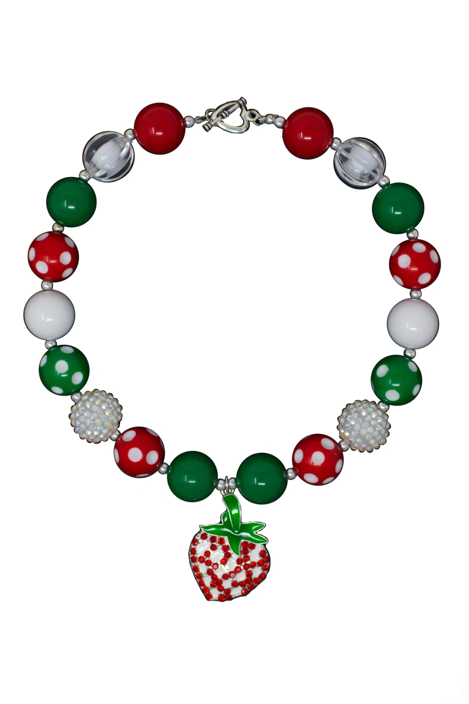 This girls’ Rhinestone Strawberry Bubblegum Necklace is an adorable addition to any kid’s jewelry box! The cute colors along with the simple design make it a breeze to match with many outfits. Try pairing this necklace with a cute dress or make it a statement with an adorable mom and me outfit.