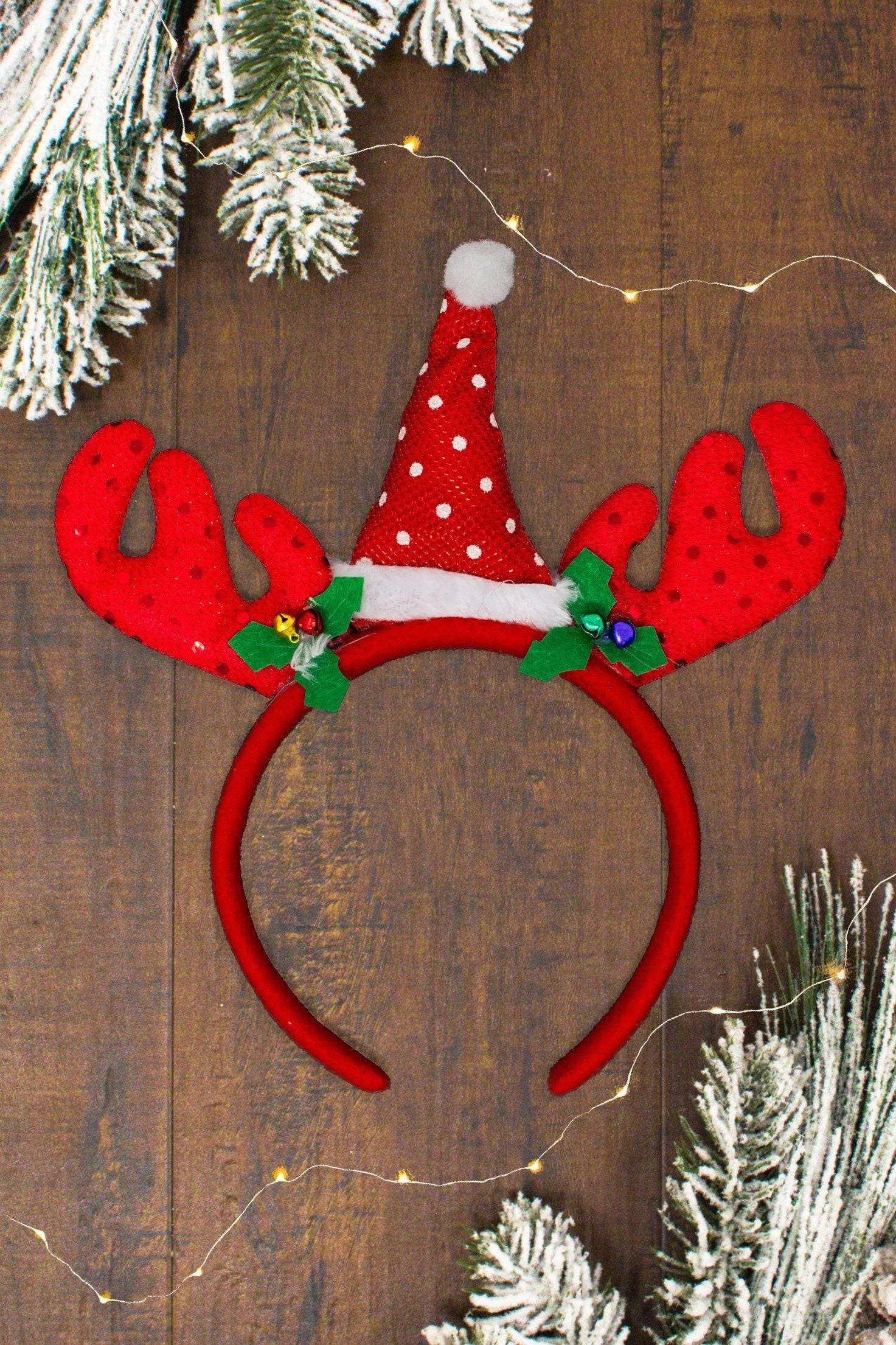 - Headband features antlers and cute Santa hat
