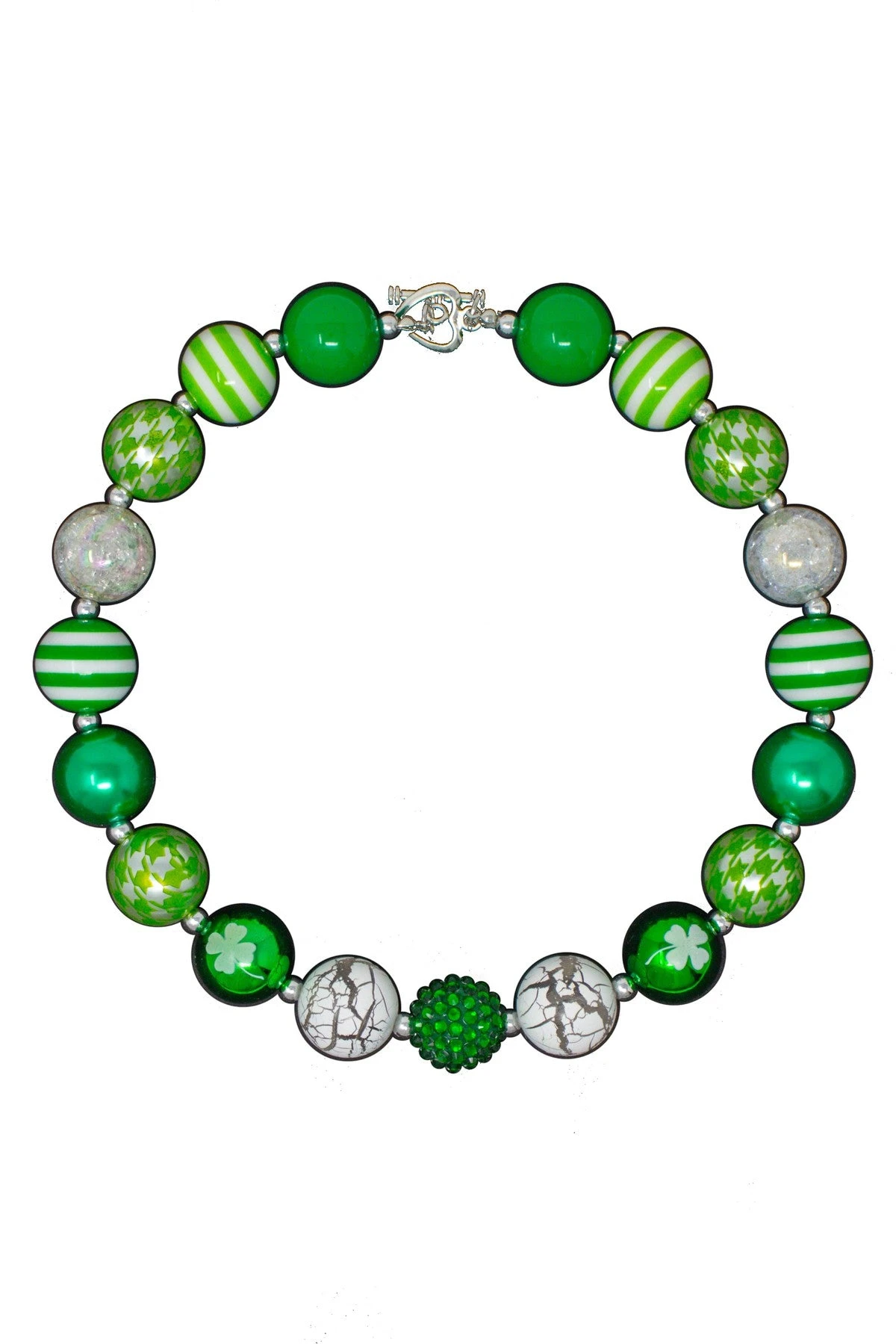 This girls’ St. Patrick’s Green & White Marble Bubblegum Necklace is sure to be your little girls’ favorite! Bring those outfits to life with accessories that radiate their unique personality. The cute green colors along with the simple design make it a breeze to match with most outfits.