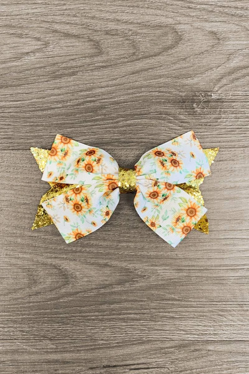 Add cute detail to her everyday hairstyles with this Sunflower Glitter Bow. This sunflower bow features a cute print and makes a versatile piece in her hair accessories, and is easy to match with any outfit. The girly bow comes attached to an alligator clip that makes it easy to clip into any hairstyle for easy styling. She can wear it with a range of hairstyles, from pigtails to ponytails, for sweet and simple accessorizing.