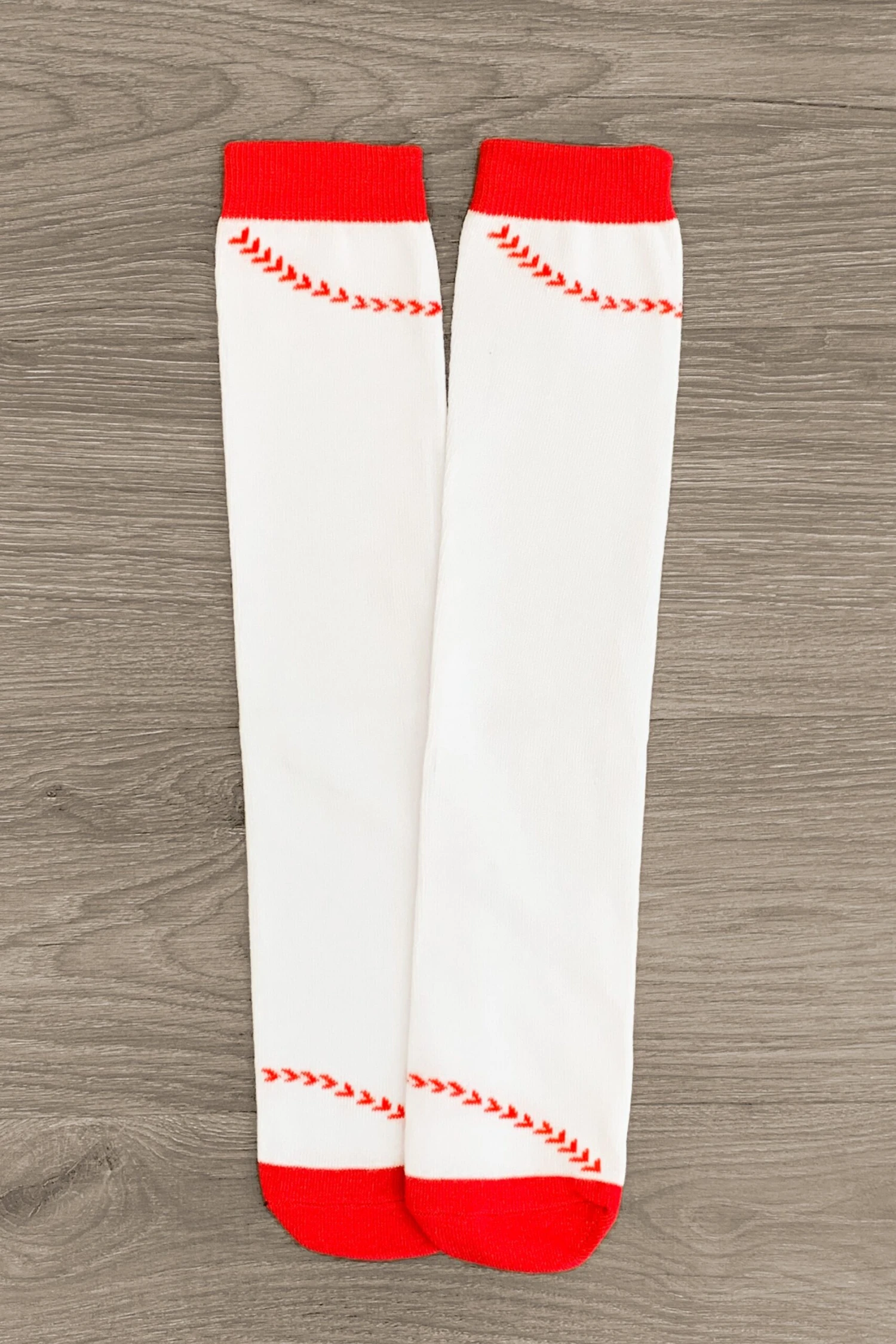 Whether she’s exploring the outdoors with friends or relaxing at home, your girl will be ready for another exciting day in our White & Red Baseball Laces Socks. Made from a durable fabric with added spandex, these girls’ socks provide her feet cozy and stretchy comfort, and they’re designed with banded cuffs that help keep them in place. Pair these socks with our clear rubber boots for the perfect look!